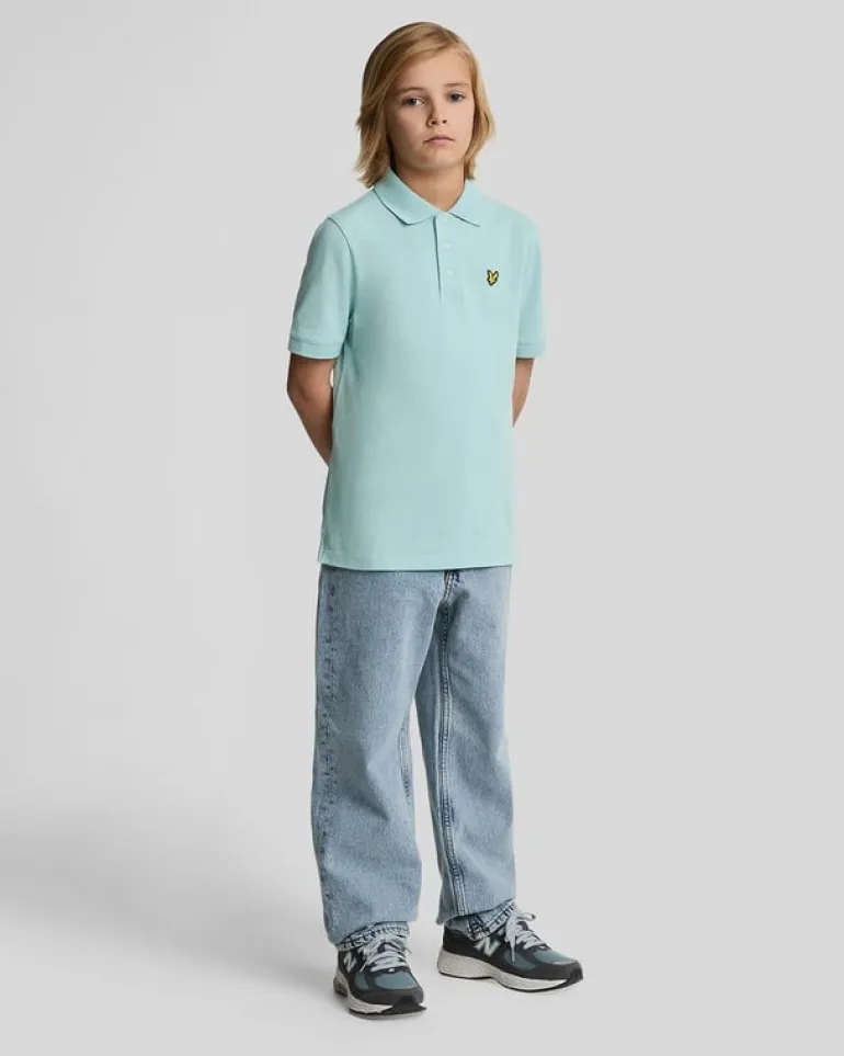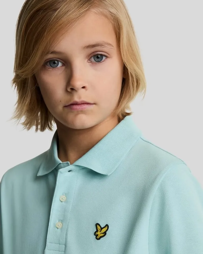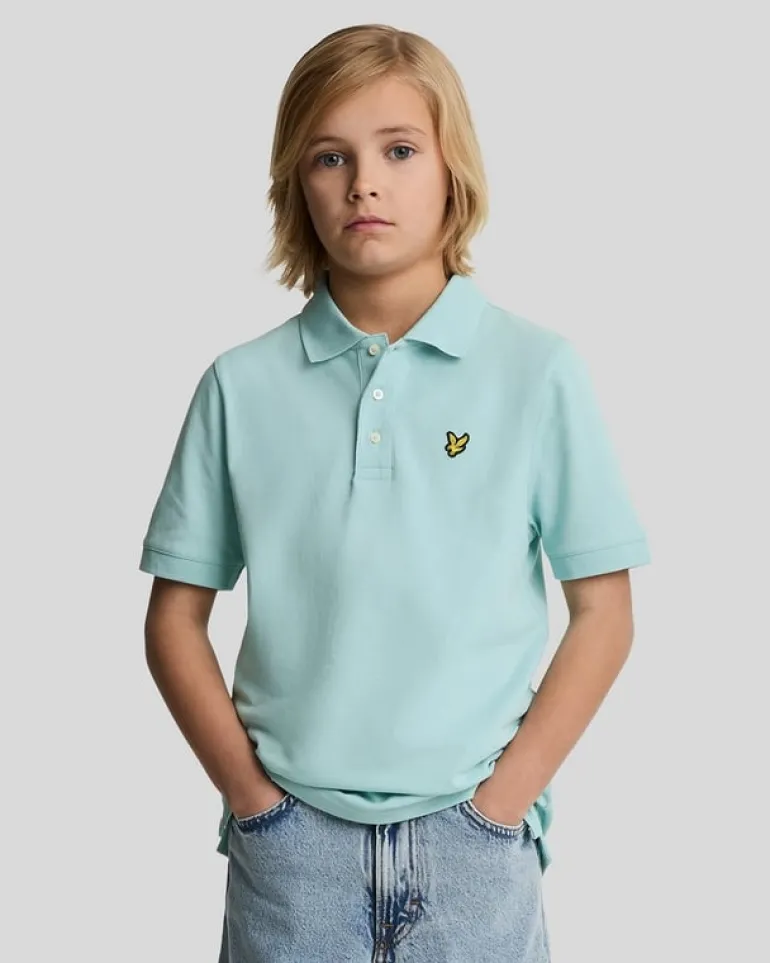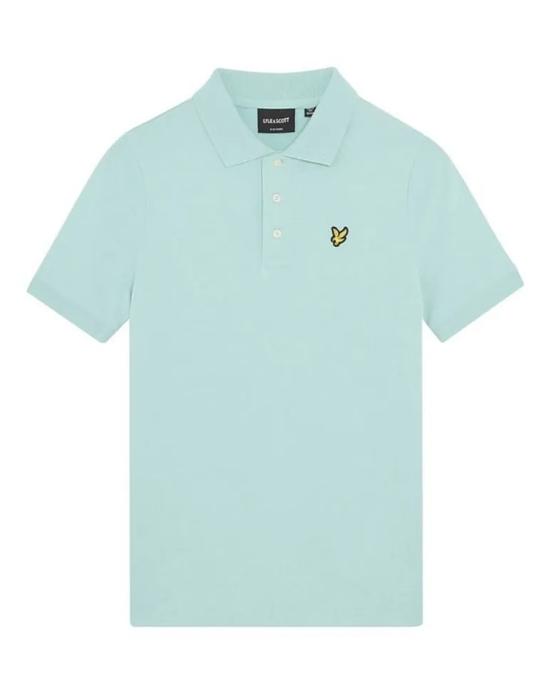 Auqa blauwe Lyle & Scott polo met logo op het borst in de kleur X580 – Future Blue. De blauwe polo in piqué kwaliteit heeft een geborduurd Lyle&Scott borstlogo boorden om de mouwen en een polo kraag.